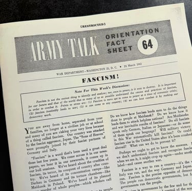 We’ve reprinted the Army’s 1945 Fascism bulletin as a “fun” reminder that the US was once opposed to fascists. Order some copies here or download it for free over here.